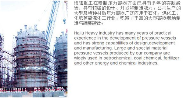 蘇州海陸重工股份有限公司位于江蘇省張家港市開發(fā)區(qū),是國內(nèi)一流的節(jié)能環(huán)保設(shè)備的專業(yè)設(shè)計制造企業(yè),目前并已初步形成鍋爐產(chǎn)品、大型壓力容器、核電設(shè)備、低溫產(chǎn)品、環(huán)保工程共同發(fā)展的業(yè)務(wù)格局。公司創(chuàng)建于1956年,注冊資本51640萬元,占地面積近50萬平米。公司下設(shè)八個控股子公司,一個余熱鍋爐研究所,在瑞士、北京、武漢、南京、上海、杭州、廣州等地設(shè)立分支機構(gòu),擁有雄厚的研發(fā)實力。公司秉承“科技領(lǐng)航、業(yè)界先鋒”的發(fā)展理念,注重研究廢熱、余熱利用和環(huán)境保護相結(jié)合的新技術(shù)研發(fā),自主設(shè)計能力居同行前列;公司承擔(dān)過國家863計劃,江蘇省科技成果轉(zhuǎn)化專項資金,榮獲國家科技進步二等獎,產(chǎn)品擁有核心自主知識產(chǎn)權(quán)并取得專利50多項;公司推行國際先進的管理體系標(biāo)準(zhǔn)和認(rèn)證,擁有 A級鍋爐制造許可證,A1、A2、A3級壓力容器設(shè)計和制造許可證,取得了民用核承壓設(shè)備制造資格許可證、美國機械工程師學(xué)會(ASME)“S”、“U”鋼印,通過了ISO9001質(zhì)量體系認(rèn)證、健康體系認(rèn)證和14000環(huán)境體系認(rèn)證;公司設(shè)備先進,裝備精良,專業(yè)嚴(yán)謹(jǐn)?shù)闹圃炖砟畲蛟斐銎焚|(zhì)非凡、質(zhì)量一流的“海陸”品牌聲譽。